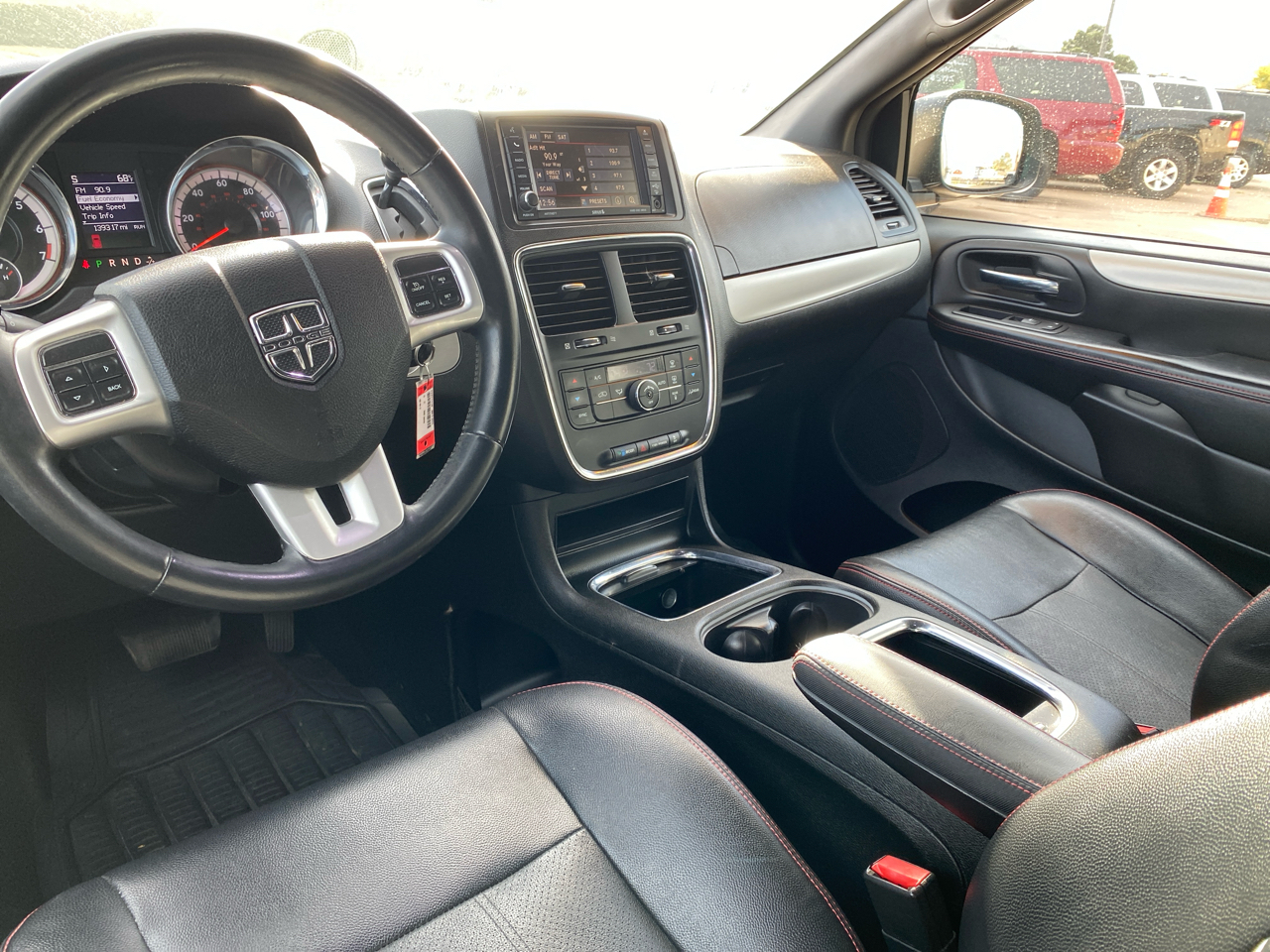 Safety is a top priority in this Grand Caravan, with side impact beams, multiple airbags, and a tire pressure monitoring system to keep you and your passengers protected on your journeys. The sleek black exterior is complemented by stylish body-colored accents and fog lamps, giving this van a modern and sophisticated look.